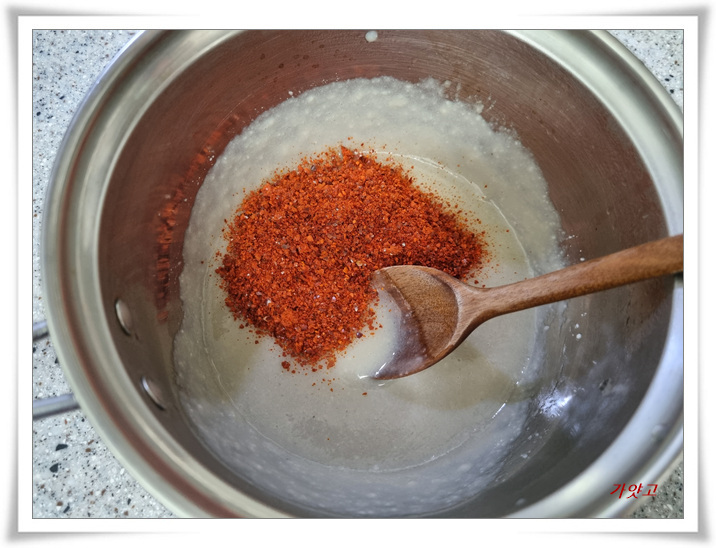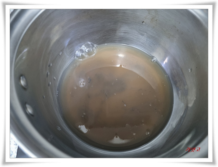 냄비에 붓고, 찹쌀가루 3큰술 넣어