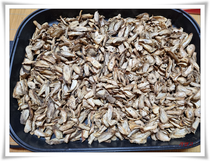 우엉을 흙만 씻어 어슷썰기해서 3~4일을 천천히 볶아주면