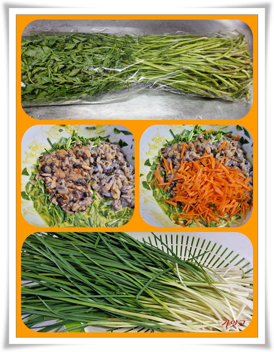 미나리랑 쪽파를 듬뿍 넣고