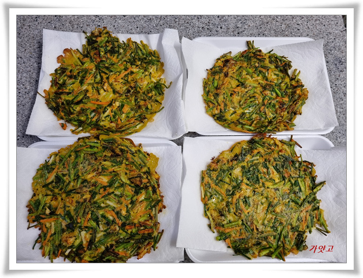 노릇노릇 전을 부쳤습니다.