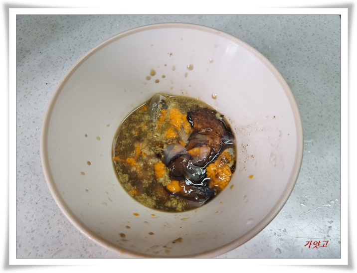 등딱지에 붙은 알이랑 내장은 다른 그릇에 담아둡니다.